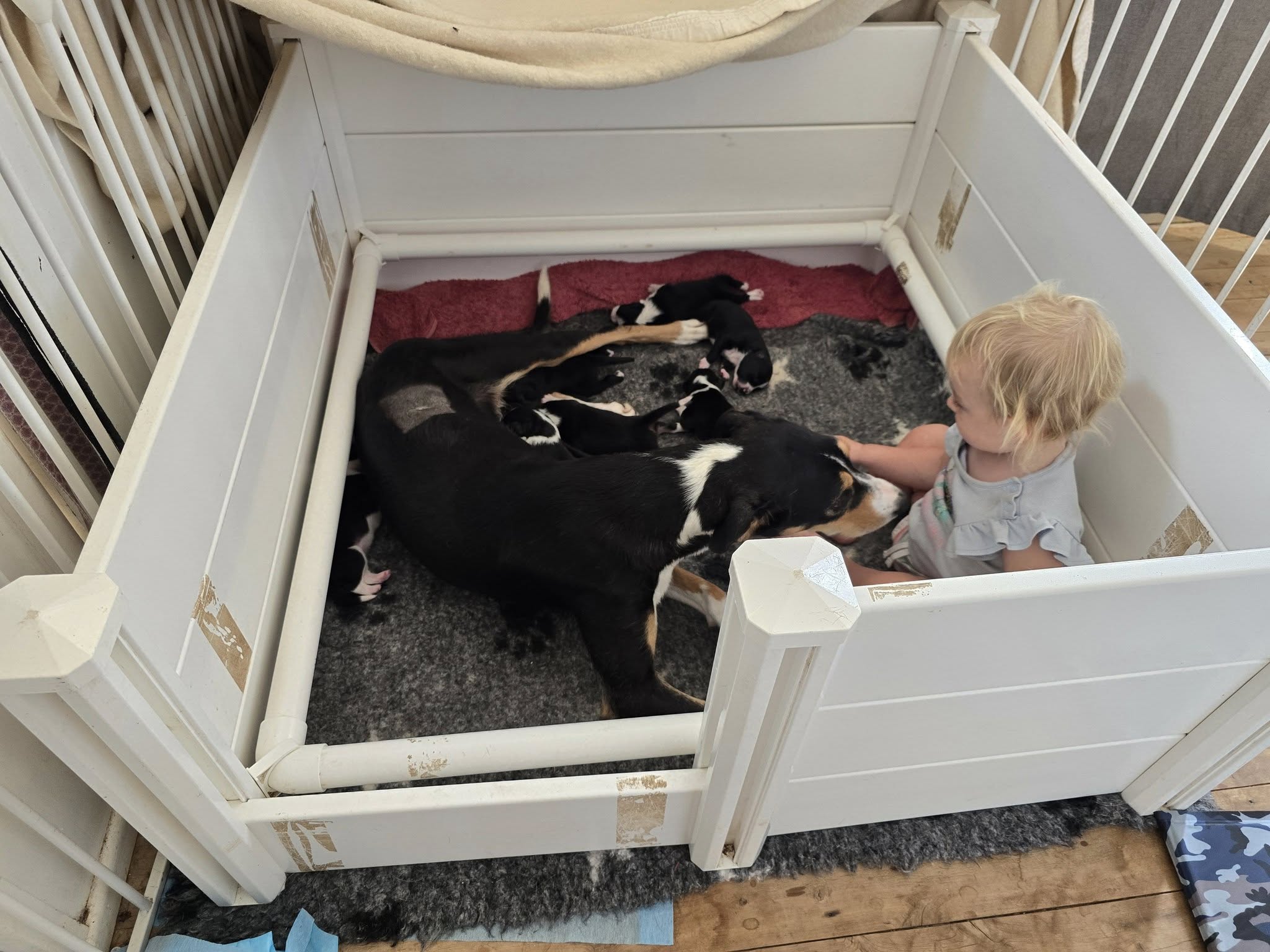 It was a whopping first litter for Gabs of 9 pups! It was exciting to have had one sold before the litter was born, and one quickly after they were. We are retaining 1 of the females from the litter.