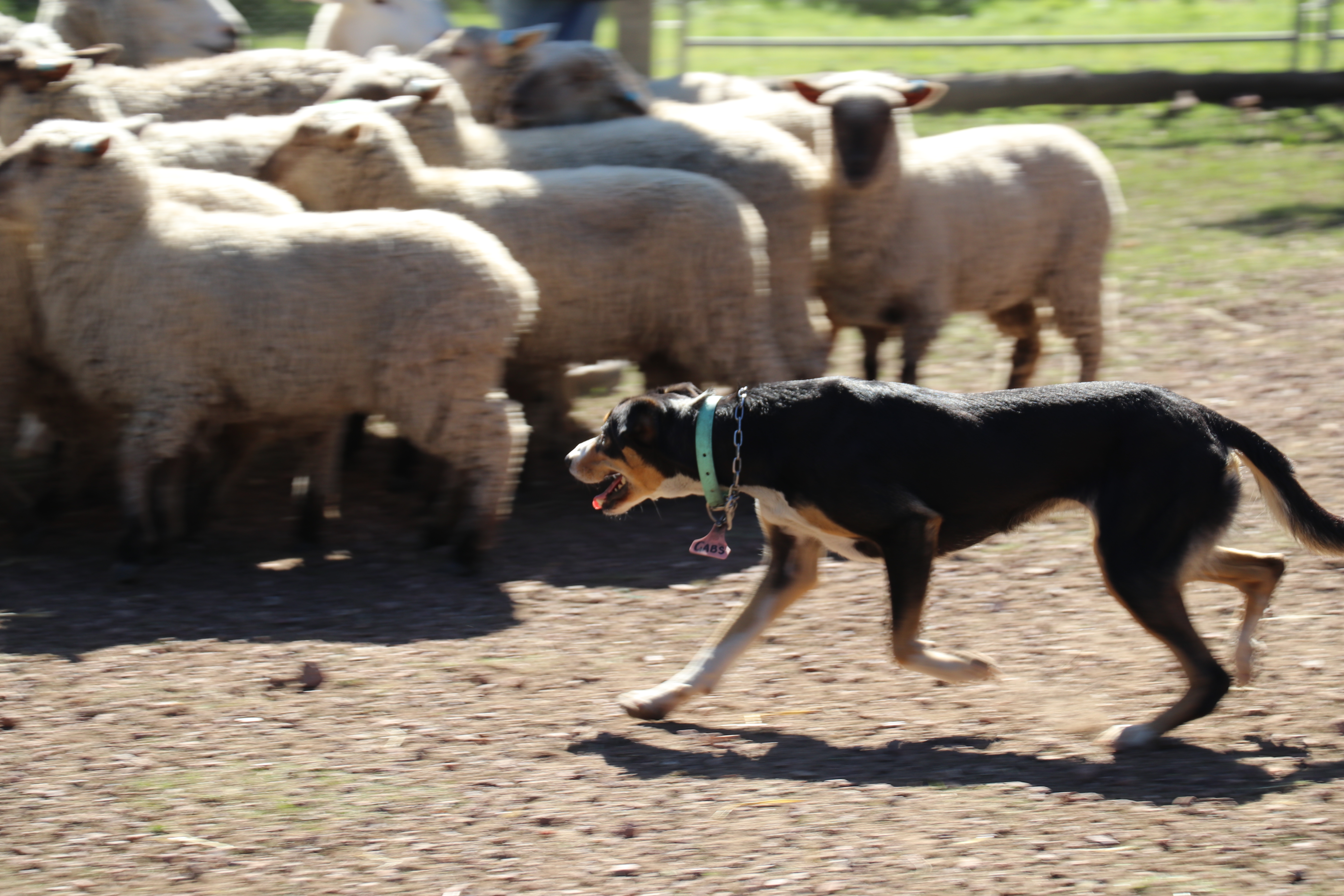 Gabs is such a loving, affectionate girl who has a high work drive and calm presence around stock. She also does have a fair bit of eye. Gabs is versatile working sheep, cattle & goats. While she has a fair bit of patience, she does have a nice clean nose bite on cattle when needed.